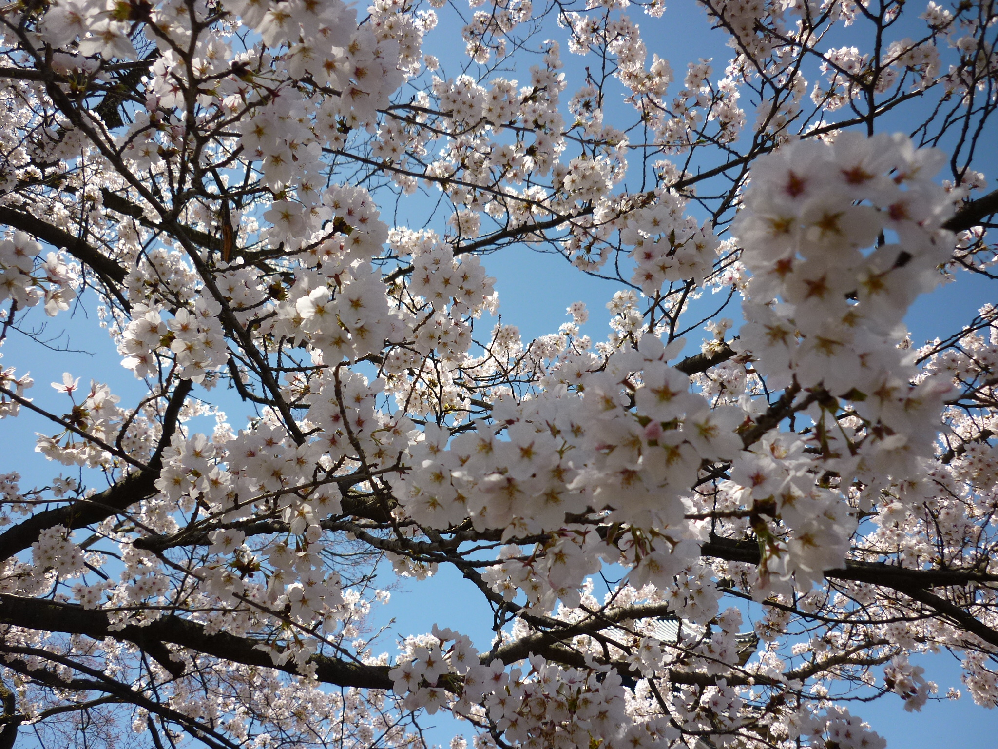 目の前の さくらの花の 光景と 透明な空 心高鳴り