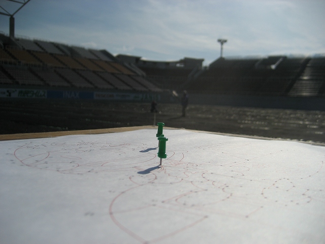 これで、紙に書いたミニアルプちゃんを、サッカー場サイズの