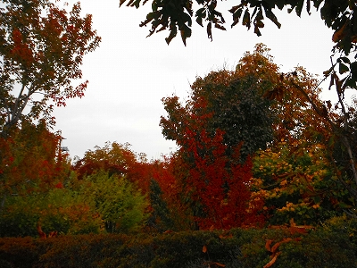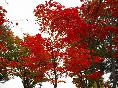 しっとりと秋雨、燃える紅葉は紅の・・・・