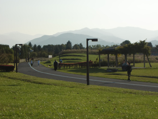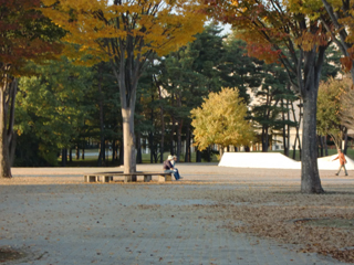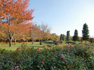 今日は、明け方冷え込んだものの昼間は日が射し、 穏やかな小春日和になりました。 午後の園内ではたくさんの方がウォーキングや散策を楽しんでいました。 風もなく暖かで、外で過ごすにはぴったりの陽気。 あちこちで見られる紅葉もきれいです。 こちらは紅葉(サクラ)とバラの競演。【花のプロムナードゾーン】 陽だまりのベンチに腰掛けてのんびりするのもおすすめです。【ターミナルゾーン】 晩秋のスカイパークは豊かな色彩にあふれています。 Alan