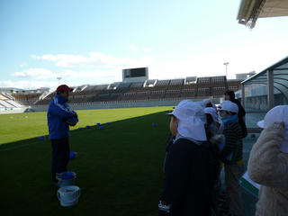 芝生の話を熱心に聞いています。