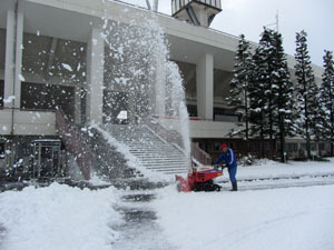 『 雪 』 10cmほどでしょうか? 積もりましたね・・・・・。 本日は、スタッフ総動員で園内の除雪を行いました。 大きなトラクターの除雪機 小さなトラクターの除雪機 軽トラックの『前で』に自作の除雪板を付けた除雪機 そして、ロータリー式の除雪機で でもでも、やはり細かな所は 人力で・・・・・。 明日は、日中もマイナス気温の『真冬日』となりそうです。 暖かい服装でお出かけ下さい。
