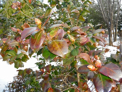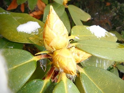 シャクナゲも馬酔木も、ヤブツバキも、花芽は春を待っています。