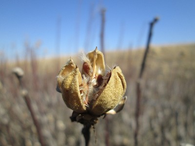 果実が割れて、中から毛の付いた種子が
