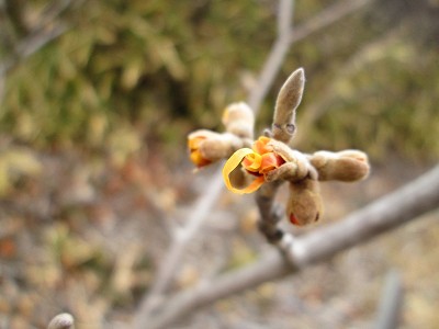 同じく早春の花の一つであるマンサクの花が咲き始めています。