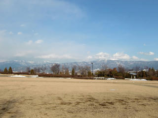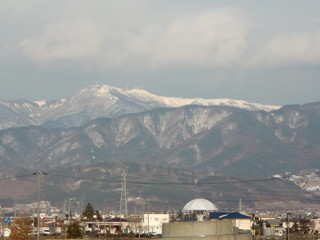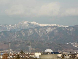 遠くに目をやると、美ヶ原の台上と電波塔が白く浮かび上がっているのが見えました。