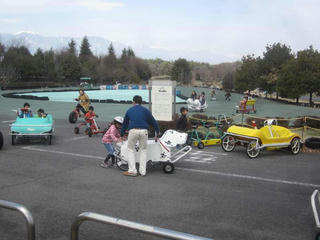 さて、本日はこの暖かさに誘われて、多くの方が来園されています。ファミリースポーツゾーンのおもしろ自転車も盛況です。皆さん楽しそうですね。