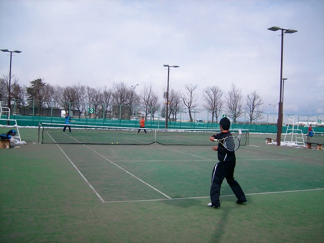 午前中より雪かきをしてくれた松本第一高校テニス部のみなさんが元気に練習中です。