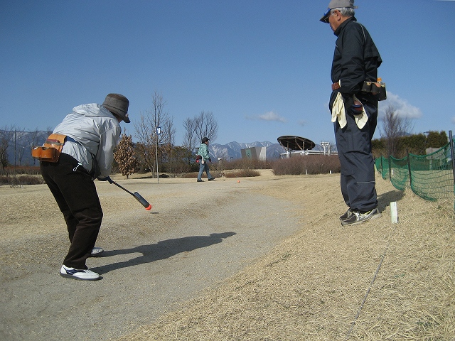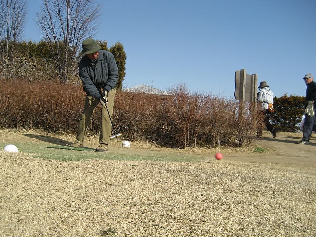 寒さに凍った芝の上、「カキーン」と快音をた響かせたボールが走っていきました。