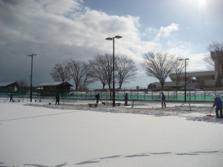 庭球場と陸上競技場の雪が片付きました。みんなでやればできるものです。