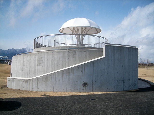 昨日から降り続いた雨も午前中で上がり、午後は良い天気となりました。スカイパークから美ヶ原、高ボッチなど東の山々を見ると・・・ 山のほうは雪だったのですね。山の中腹で、くっきりと雪の境界が一直線に見えました。 このコントラスト、ちょっと不思議ですね。 ちなみにこの写真は、みどりの交流ゾーンにある「バベルの塔」からの撮影です。 バベルの塔はスロープをグルグルまわりながら登る展望台です。ちなみに西側の景色はこんな感じ↓ みどりの交流ゾーンのアンジュレーションがきれいに見えます。 登ったあとは滑り台で降りれます。 このバベルの塔、実は、展望台や滑り台の他にもう一つ重要な役割があります。 この中は機械室となっており、ポンプや制御盤、流れや壁泉の濾過設備が入っているんです。 4月中旬くらいからは、バベルの塔内にある機械を動かし、近くにある流れや壁泉にも水が流れ、とても清々しいスポットとなります。 是非、足を運んでみてください。 ぱんだ副班長