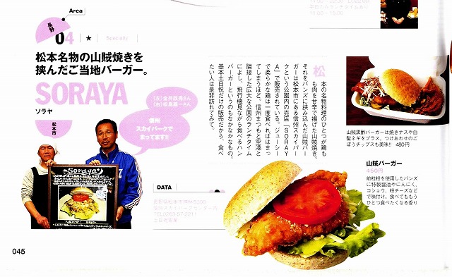 先日発売された「別冊Lightning ハンバーガーブック」(枻(えい)出版)に、信州松本のご当地バーガーとしてスカイパークの「山賊バーガー」が掲載されました!