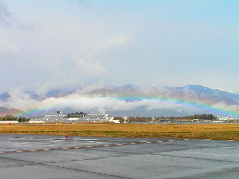 空港と陸上競技場と虹と山と