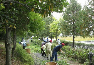刈込作業により手入れの行き届いた見通しの良い園路と