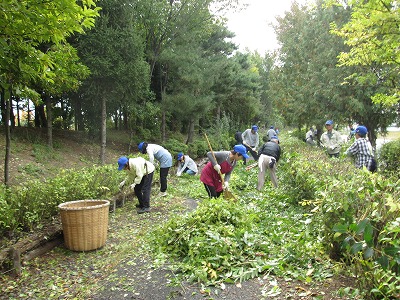 14号駐車場周辺の刈込を行いました。