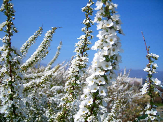 スカイパークの園内では、たくさんの花が咲いています。 今日の写真は、ゆきやなぎとアルウィンです。 陸上競技場前や、みどりの交流ゾーン、野と花のゾーンにも、ゆきやなぎの群生がみられます。 ちいさく可憐な純白の花も、房をなして連なると 見ごたえがあります。 さくら