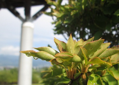 雨上がりの園内へ出てみると、樹木の葉っぱが