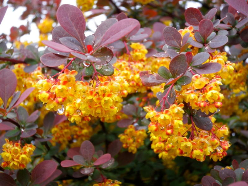 芝生グラウンドの脇に、雨にぬれて咲くあまり見かけない花を発見。 調べてみると「メギ・アトロプルプレア」という名前の花木でした。 Pontarou@珍しく花の話題 でした