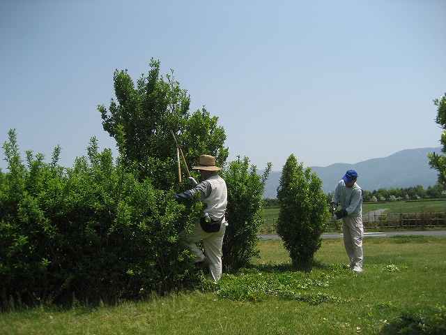 今日は、 花の守り人たちの集う日です。 公園の花とみどりのボランティア「花守の会」、今年度2回目の活動として 南管理棟周辺の刈り込みを行いました。 こちらは、駐車場を囲むニシキギの剪定。ニシキギにはちいさな緑の花がありました。 公園内も剪定。 今日は、最高気温が28度にもなる予報。おひさまの下での作業たいへんお疲れさまでした。 さくら