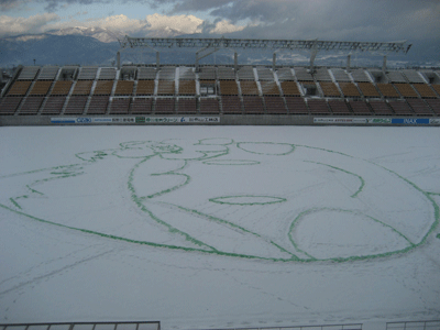 メイン企画「アルウィンに地上絵出現!」では、アルウィンのピッチにアルプちゃんが半分ちょっと姿を現しました。