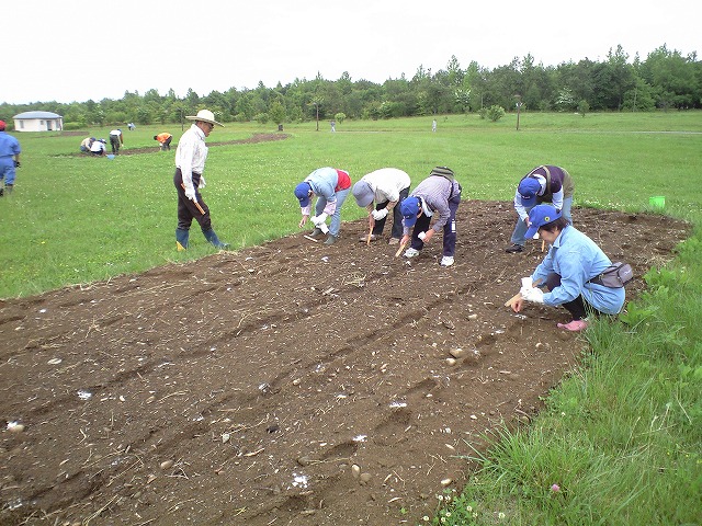 花守の会でひまわりの種を蒔きました。 種を蒔く面積は4000㎡!広大な面積に種を蒔くのは重労働なのですが、本日は50名をこすボランティアのみなさんにきていただいたおかげで、予定より早く作業を終了することができました。 種蒔きの後、みなさんには石拾いもしていただきなんと拾った石は2tダンプ一台分にもなりました! 作業終了後は毎年恒例になった所長特製のカレーライスをみんなでいただき、大変充実した花守の会となりました。 参加していただいたみなさん、本当におつかれさまでした。 ありがとうございました! byぱんだ副班長