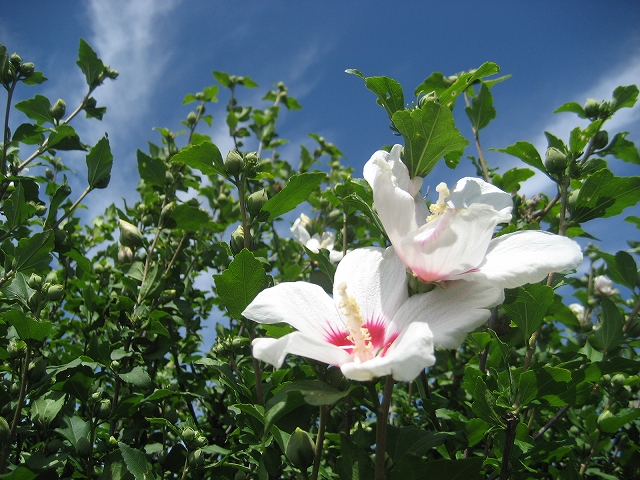 そして、むくげが咲きはじめました。これを見ると、夏が来たなと思います。