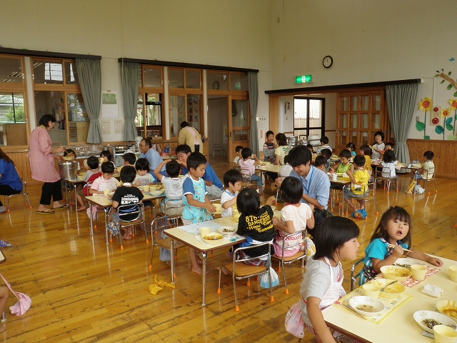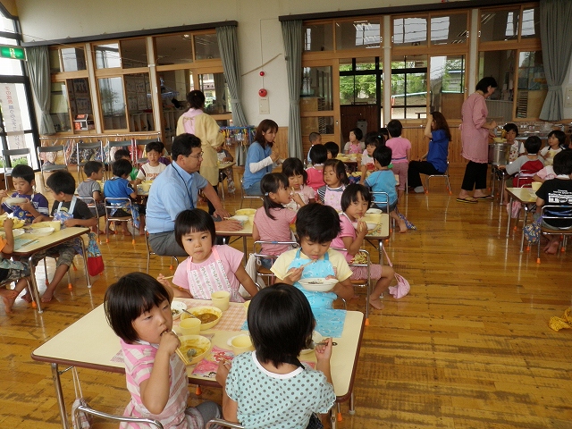 TOYBOXスタッフ7人で、張り切ってお邪魔しました。園児のみんなが午前中から、にんじん、じゃがいも、たまねぎの皮むきやカットなどをお手伝してくれたカレーです。そして、たまねぎは年長さんたちと一緒に昨年の秋に植付し、今年の6月に収穫したものを使って下さったので、とても思い出深いカレーでした。みんなで、わいわいとお話しながら美味しくいただきました。スタッフのOさんは3皿も食べていました。とても楽しい時間を過ごせて美味しいカレーを食べれて沢山の笑顔が見れてとても良い1日でした。今井保育園のみなさん、ごちそうさまでした。