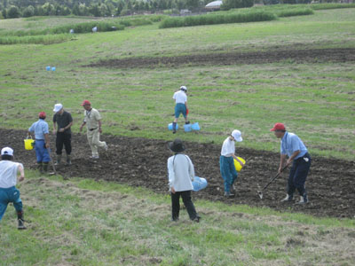 波田中の生徒さんがそばの種を播きにきてくれました