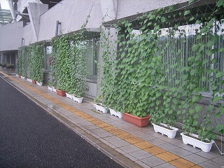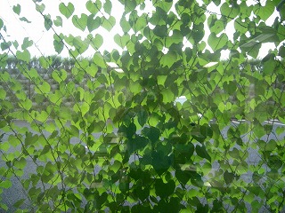本日も暑い日となりました。夕立ちで少し涼しくなり、ようやく「夏」といった感じになりましたね。 先日のブログで紹介した、「あさがおDEエコ大作戦」による、アルウィン事務所内に突如あらわれた壁面アート!?http://shinshuskypark.blog.shinobi.jp/Entry/380/ のおかげもあり、なんだかいつもより涼しいような気がしています。 本日のあさがおの様子。どうですか、この成長っぷり!ツルがつたうネットも重そうです。 事務所内から外を見ると、こんな感じ。 葉のみどりが涼しげな雰囲気を作ってくれています。 花も少しずつ咲き始めてきましたので、これからますます楽しみですね。 以上、ぱんだ副班長でした。