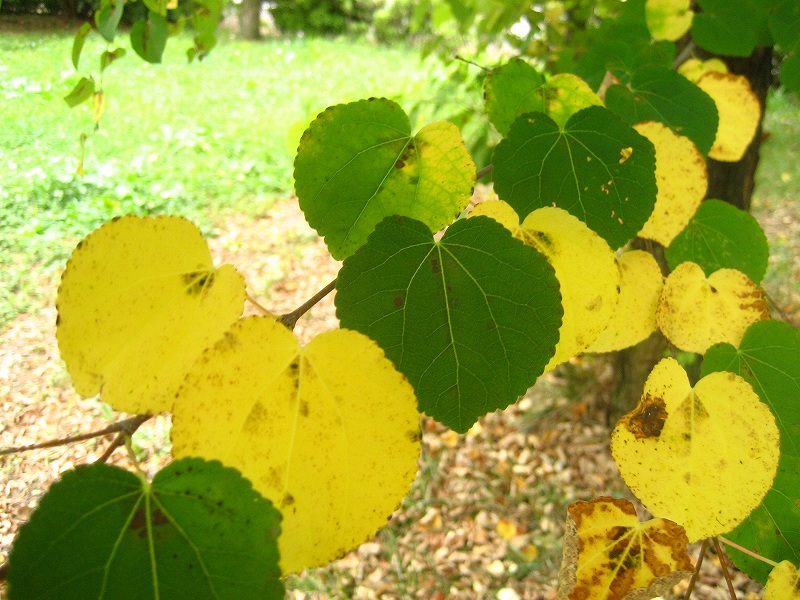信州スカイパークの5号駐車場は ドッグランにほど近く、 「かつら」の木が多いところです。 駐車場で車から降りると、一面に あまく香ばしい香りがたちこめています。 すっかり秋の風情 と言い切ってしまいたいくらい、香りは秋いっぱい! ちなみに、香りの成分はクマリンというらしく、桜餅の香り成分のひとつで、 かつらの枯葉に含まれているとのこと。 ハートの葉っぱが いろとりどり。 かつらの木立になごみました(*´ー`*) さくら