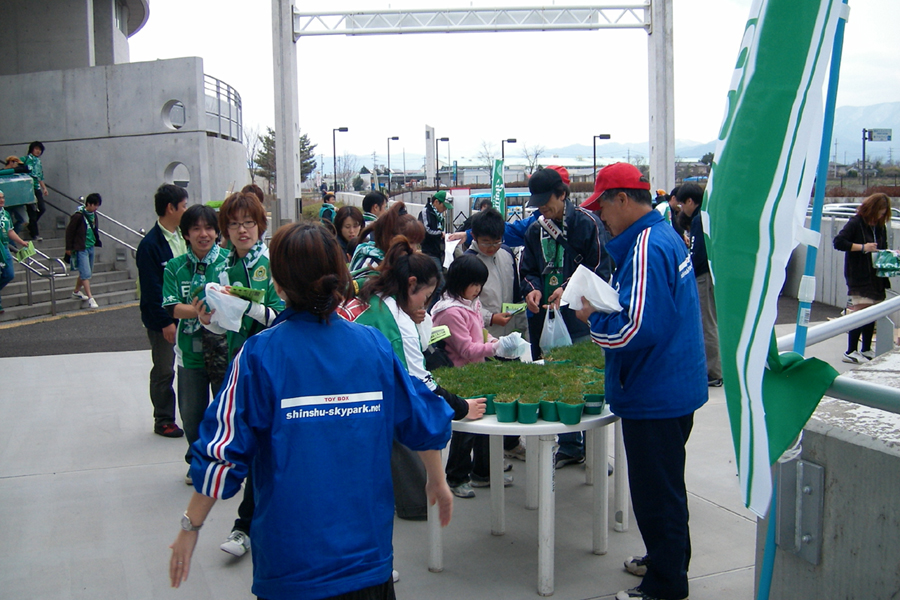 公式戦開幕に合わせて、アルウィンの芝の無料配布を行いました。
