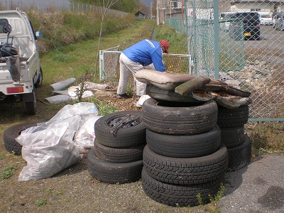 空き缶、たばこの吸い殻、タイヤ、パイプ、座イス・・・etc