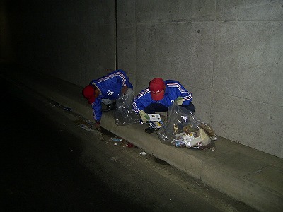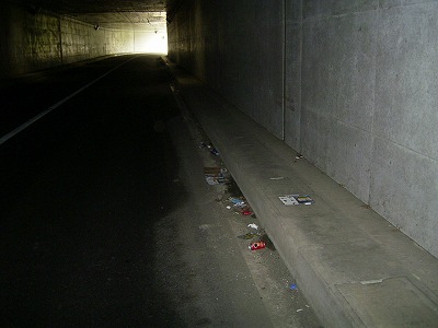 スカイパークの下を通るトンネルの中・・・すごいゴミです。