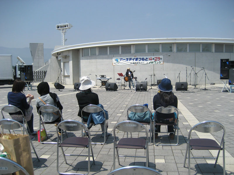 こんにちは。今日は昭和の日です。アルウィン南側では「アースデイまつもと2008」が開催されています。フリーマーケット、ライブが行われ、たくさんの人でにぎわっています。午後3時まで開催中!