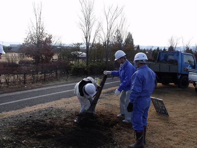 本日より、ジョブカフェ信州さんの若年者就労実体験チャレンジ「ジョブチャレ」が始まりました! http://www.jobcafe-shinshu.pref.nagano.jp/index.asp http://www.pref.nagano.jp/syoukou/roko/jobchalle/top.htm 今回は3人のかたが参加されました。 本日の作業は園内の枯損木の撤去と、アルウィン北側のイルミネーション準備です。 寒風吹く外での作業は大変ですが、みなさん初日から一生懸命取り組んでいます。 以上ぱんだ副班長でした。