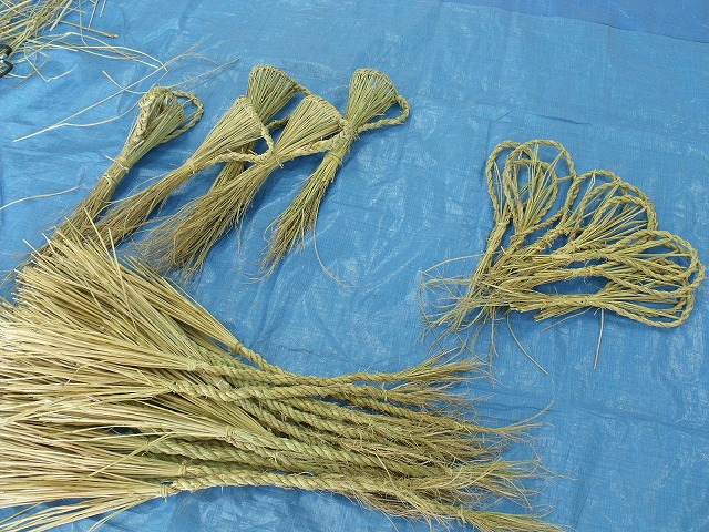慣れた手つきです!すごい!! 作っている正月飾りは・・・・ 左から、「おやす」・「ごぼうじめ」・「しゃもじ」です。 新しい年を迎えるにあたり、手作りの正月飾り・・・本来の神様をお迎えする意味の他に、私たちTOYBOXの「自分達でできることは何でもやろう!」という精神の象徴でもあります。