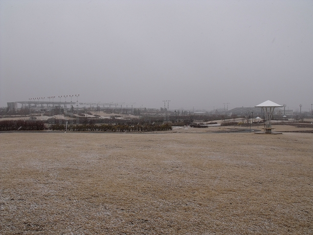 芝生の上などはうっすら積もっています。