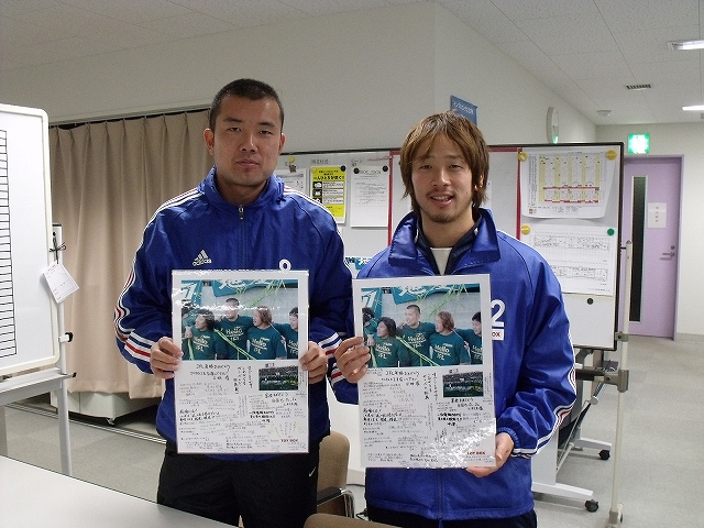 こんにちは。りんぐです。 今更ですが、わがTOYBOXで働く松本山雅の今井くん、山崎くん両選手に JFL昇格のお祝いということで TOYBOXメンバーが書いた特製寄せ書きを贈りました。 寄せ書き自体は昇格決定直後の興奮冷めやらぬ時期に完成していたのですが、 諸事情により、本日の贈呈になってしまいました。 遅くなってごめんなさい。 喜んでいる(?)2人の表情はコチラ↓ そして、この後彼らは今日もお仕事(巡回)に向かったのでした。