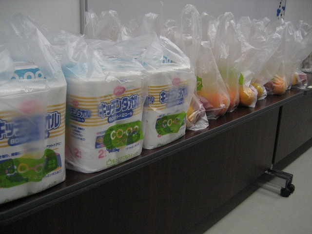 今回もちらりと袋を覗いたら、ティッシュ5箱組、キッチンペーパーなどに混じって