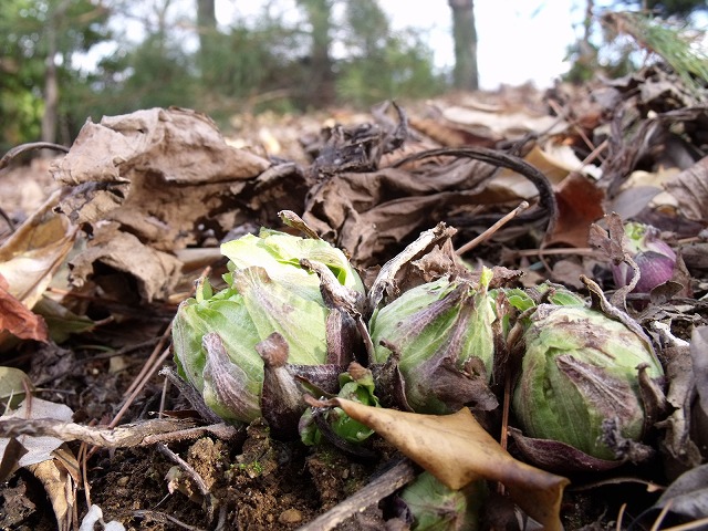 他の所も落ち葉をよけてみると、ふきのとうだけでなく、緑の草の芽がみられました。