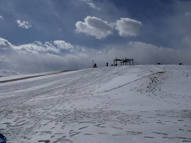 場所は、ターミナルゾーンの展望台、そり遊びには絶好のスポットです。