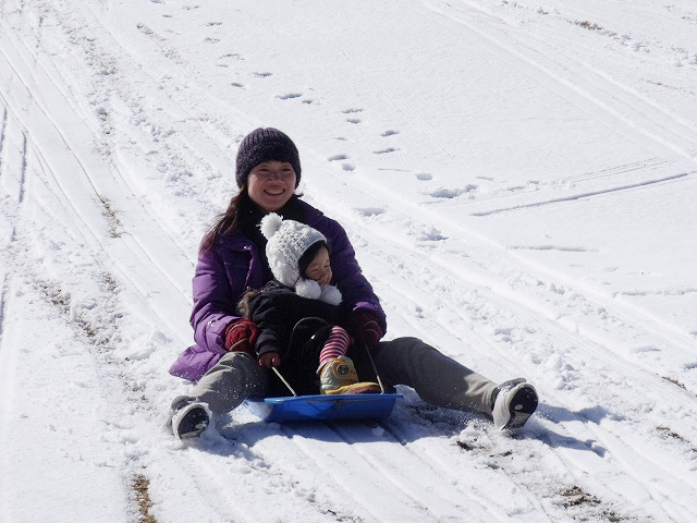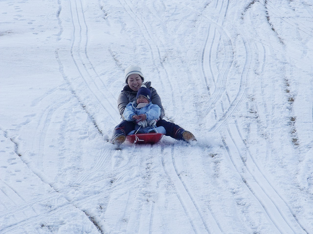 そんななかでも、元気にそり遊びをしている親子の方々がいらっしゃいました。