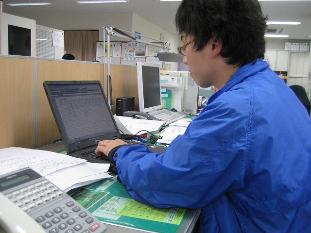 今日は事業グループのお仕事・・・アンケートの集計をしてくれています。