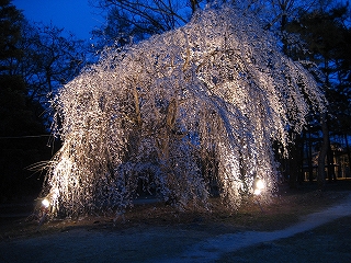 というわけで、今年も競技スポーツゾーンのシダレザクラをライトアップいたします。