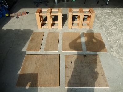 丸ノコでカットされた状態がこれです。(+あらかじめ組んでおいた木材)↓