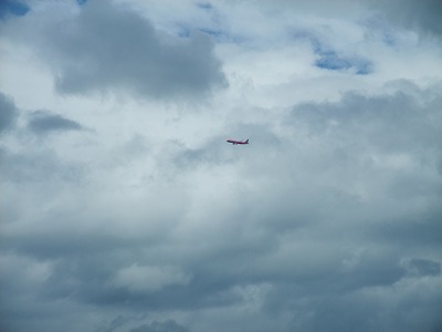 スカイパーク大芝生広場近くの滑走路脇は今日もジェット機の見物人で賑わってました。