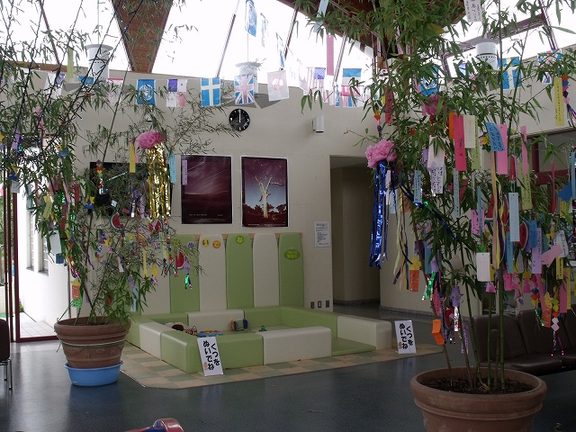 短冊はロビーにありますので、皆さん願いごとを書いて飾って下さいね!