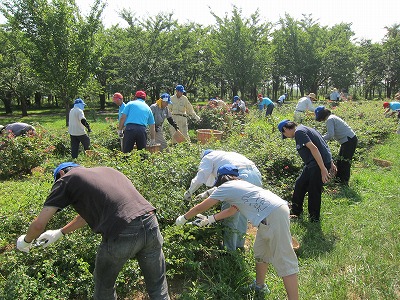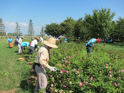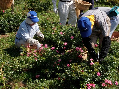 今日は花のプロムナードにてボランティアの皆さんがバラの花柄つみをおこないました。