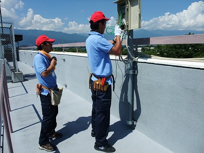 電気や通信関係はもちろんの事、様々な公園管理作業を職員と一緒に作業をしながら学んでおられます。