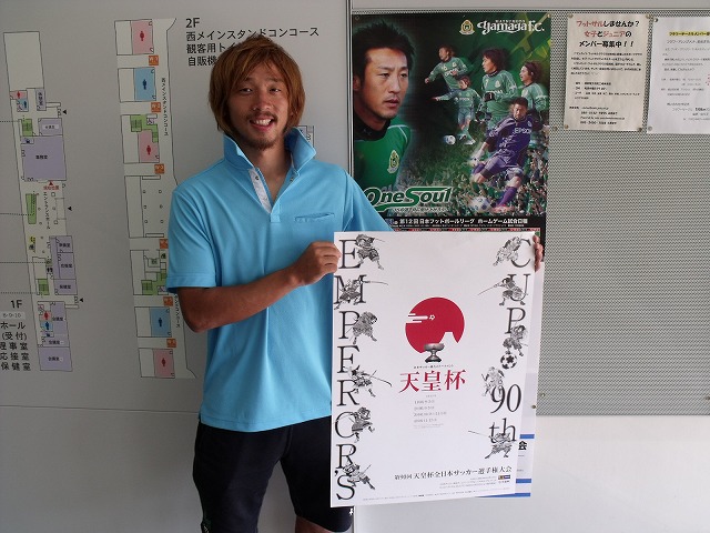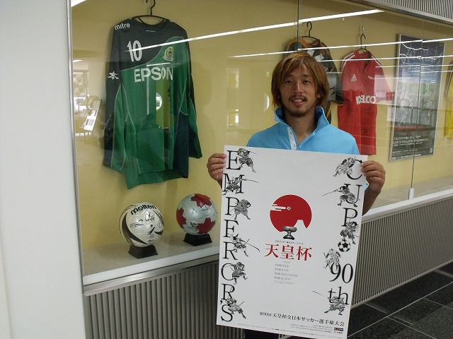 ちなみにアルウィンには昨年の天皇杯、松本山雅FC VS 浦和レッズ 戦の時に使用されたボールなどが展示されています。今井選手も昨年の天皇杯同様、気合十分「勝ちあがれるよう、いつも通り全力で行きますよ!!」と言っています。